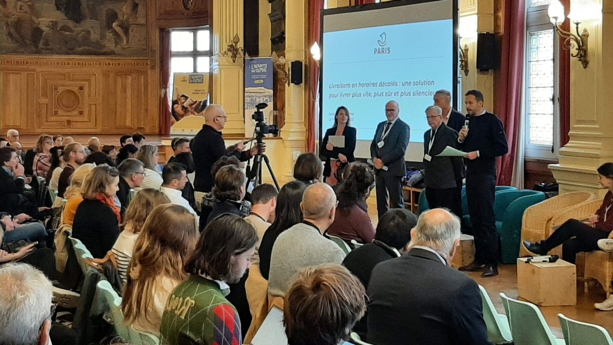 🏛 Cet évènement, qui a réuni plus de 150 personnes, a été introduit par David Belliard, adjoint à la maire de Paris en charge de la transformation de l’espace public, des transports, des mobilités, du code de la rue et de la voirie, qui a rappelé que la Ville de Paris a fixé les livraisons en horaires décalés comme priorité stratégique en vue des Jeux Olympiques et Paralympiques de 2024. David Belliard a aussi annoncé la création d’une subvention de 10 000 € pour aider les commerces à réaliser des travaux d’insonorisation pour permettre le décalage horaire des livraisons et faciliter leur labellisation Certibruit.
